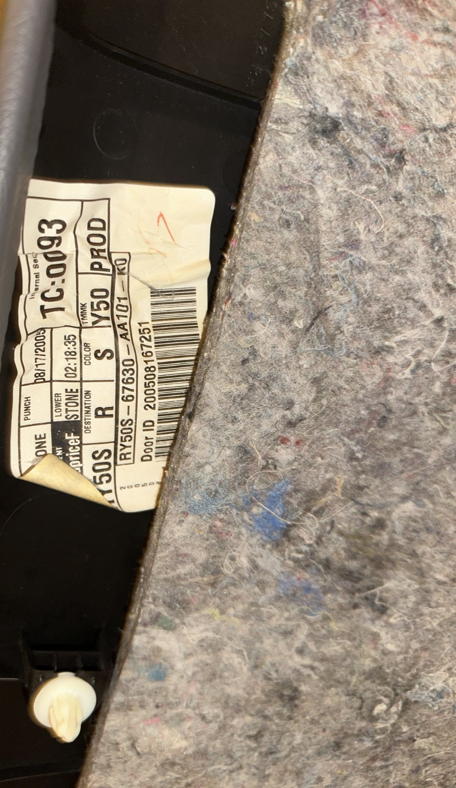 02-06 Toyota Camry Door Panel Light Gray RH Passenger Rear OEM